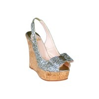トップ > Sandals ( サンダル ) > wedge sole(ウェッジ) > ラメグリッター スクエアリボン オープントゥ コルク ウェッジソール サンダル